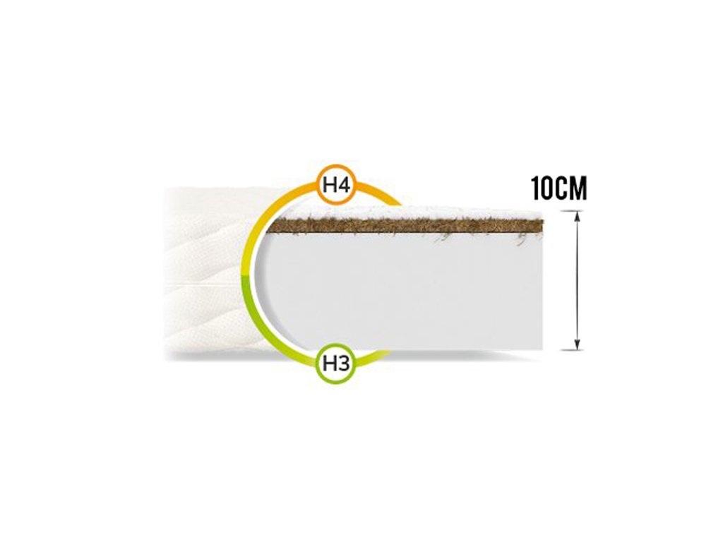 A gyerekmatrac minőségi habból és kókuszrostokból készül. A poliuretán hab rendkívül tartós, így nem deformálódik el, tapintása kellemes. A felhasznált kókuszréteg antiallergén és penészgátló tulajdonságokkal rendelkezik. A kókuszréteg szabályozza a légáramlást a matrac belsejében. A kókusz deszka ideális keménységgel rendelkezik, valamint jótékony hatással van az alvásra.