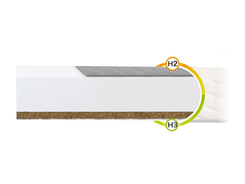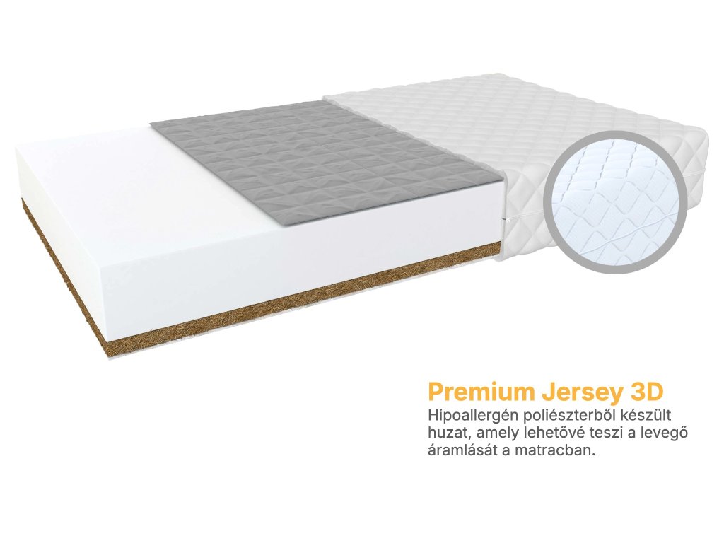 A matrac elasztikus poliuretán habból készül, mely biztosítja a gyermek egészséges, nyugodt álmát. A hajdina réteg párnácskákba zárt hajdina magok héjából tevődik össze. A kókuszréteg kiváló antiallergén és penészgátló tulajdonságokkal rendelkezik, a matrac belsejében az ideális légáramlást is szabályozza.