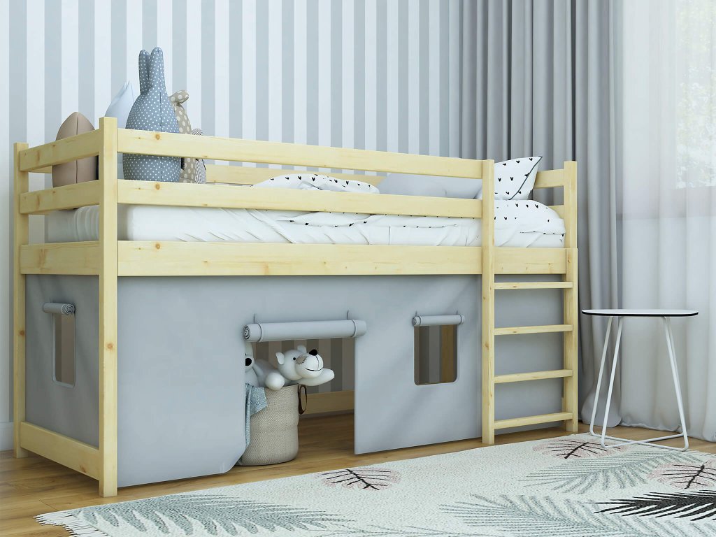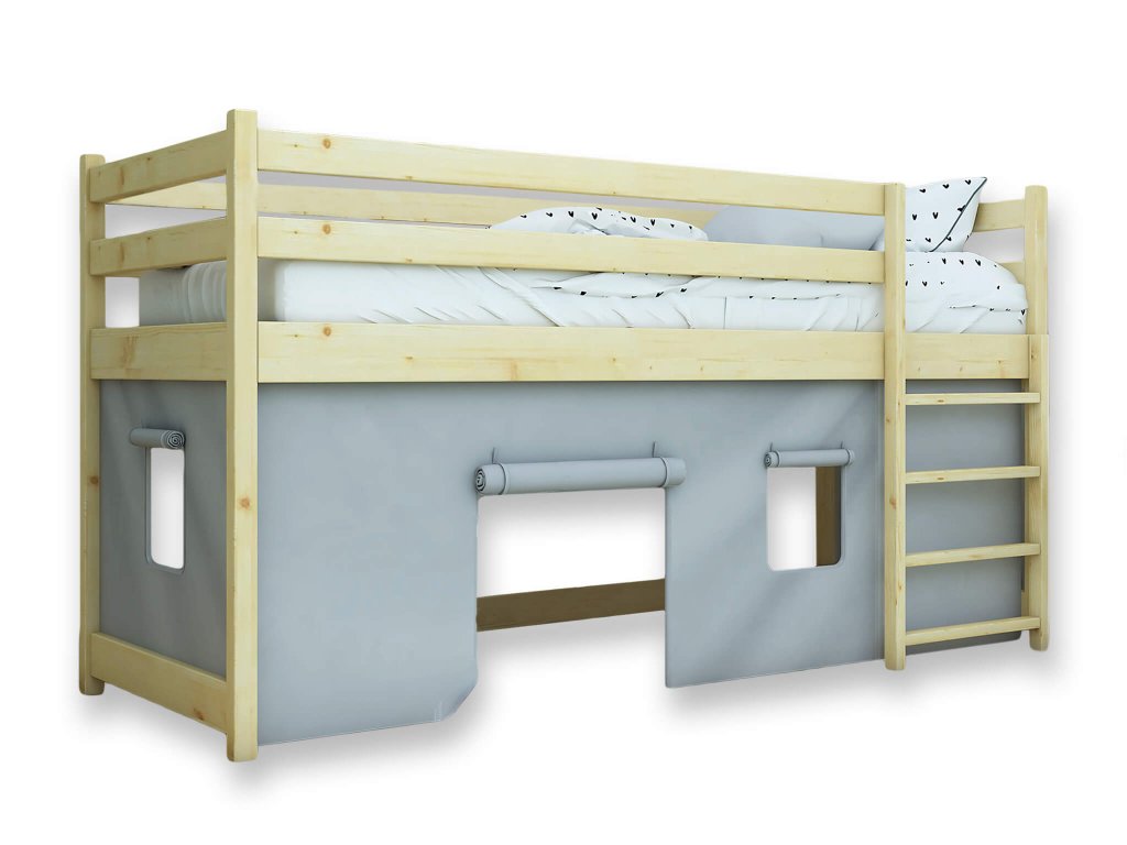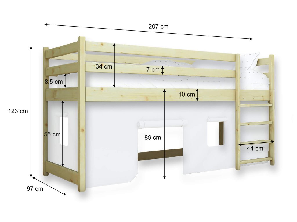 A Bunkie natúr borovi színű gyerek emelet ágy az, amire minden gyerek vágyik. A galériaágy 90x200 cm méretben készül, amely így elegendő helyet biztosít gyermeke számára a kényelmes pihenéshez. Az emelet ágy nem csak egy kényelmes és biztonságos fekhelyet kínál, de egy szuper kis kuckót is a játékra és a szórakozásra. Amennyiben megrendeli a galériaágyhoz tartozó függönyt is, egy kis házat kap majd, ahol gyermeke kedvére játszhat vagy elbújhat és pihenhet. Az ágy kiváló minőségű borovi fenyőfából készült, ami garantálja a galériaágy hosszú élettartamát és a sérülésekkel szembeni ellenálló képességét. A szilárd léces ágyrács megfelelő alátámasztást nyújt gyermekének alvás közben.