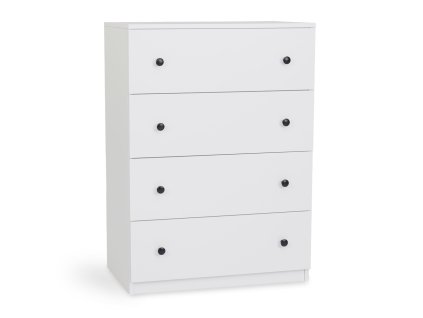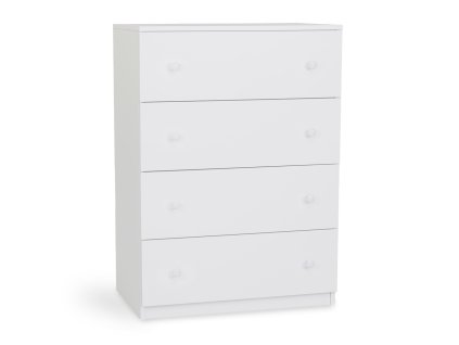 Dobja fel otthonát ezzel az elegáns fehér Leo L4 komóddal, amely gyönyörű ezüst színű fogantyúkkal rendelkezik. A letisztult, modern kialakítású komód tökéletes megoldás mindazok számára, akik praktikus és stílusos tárolóhelyet keresnek. Fehér színének köszönhetően tökéletesen illik bármilyen stílusú otthonba, és rengeteg tároló helyet kínál a dolgai rendszerezéséhez. Praktikus kialakításának köszönhetően könnyen hozzáférhet a tárolt dolgokhoz, legyen szó ruhákról, dokumentumokról vagy egyéb apróságokról. Az elegáns Leo L4 komód négy tágas fiókkal rendelkezik. Kiváló minőségű KRONO forgácslapból készült, és fehér HRANIPEX PVC furnérral egészült ki. A Leo L4 komód igazán gyönyörű kinézettel rendelkezik. Tökéletes választást jelent minden gyerekszobába.