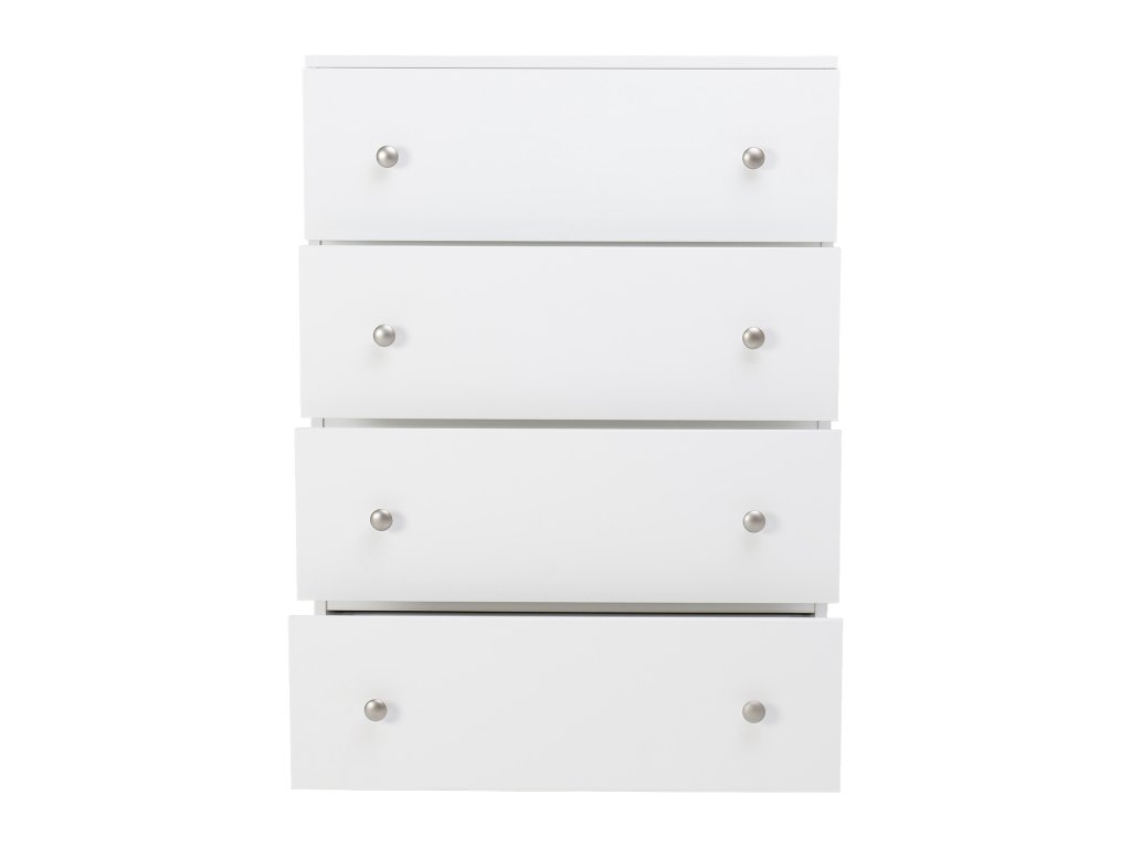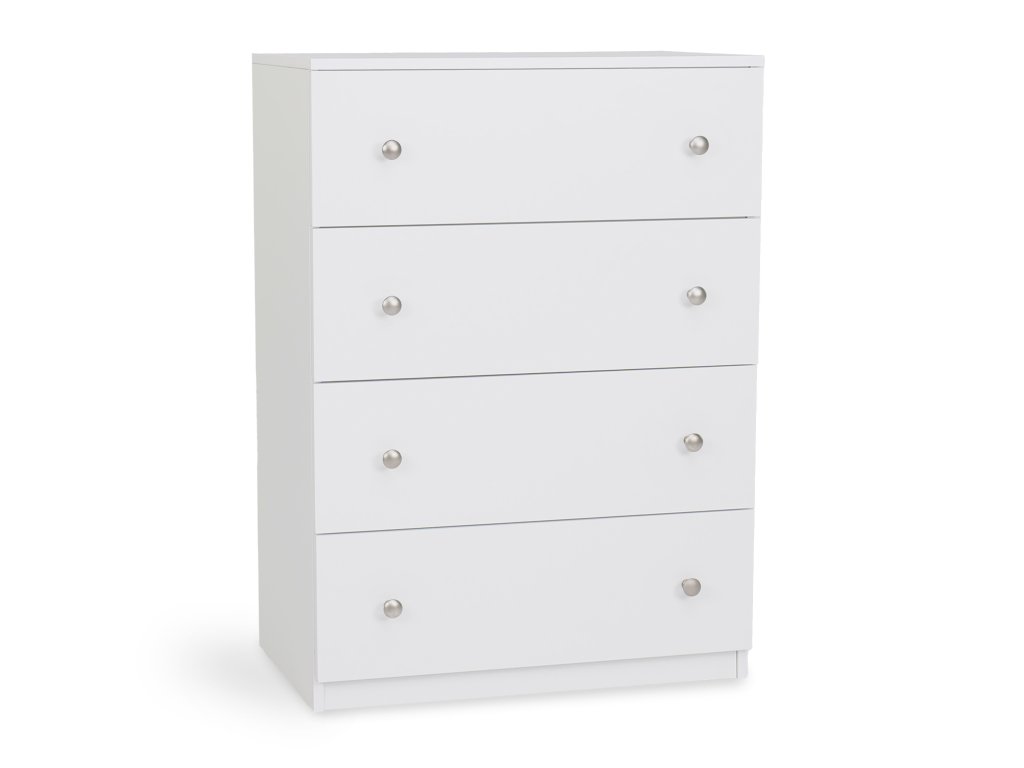 Dobja fel otthonát ezzel az elegáns fehér Leo L4 komóddal, amely gyönyörű ezüst színű fogantyúkkal rendelkezik. A letisztult, modern kialakítású komód tökéletes megoldás mindazok számára, akik praktikus és stílusos tárolóhelyet keresnek. Fehér színének köszönhetően tökéletesen illik bármilyen stílusú otthonba, és rengeteg tároló helyet kínál a dolgai rendszerezéséhez. Praktikus kialakításának köszönhetően könnyen hozzáférhet a tárolt dolgokhoz, legyen szó ruhákról, dokumentumokról vagy egyéb apróságokról. Az elegáns Leo L4 komód négy tágas fiókkal rendelkezik. Kiváló minőségű KRONO forgácslapból készült, és fehér HRANIPEX PVC furnérral egészült ki. A Leo L4 komód igazán gyönyörű kinézettel rendelkezik. Tökéletes választást jelent minden gyerekszobába.