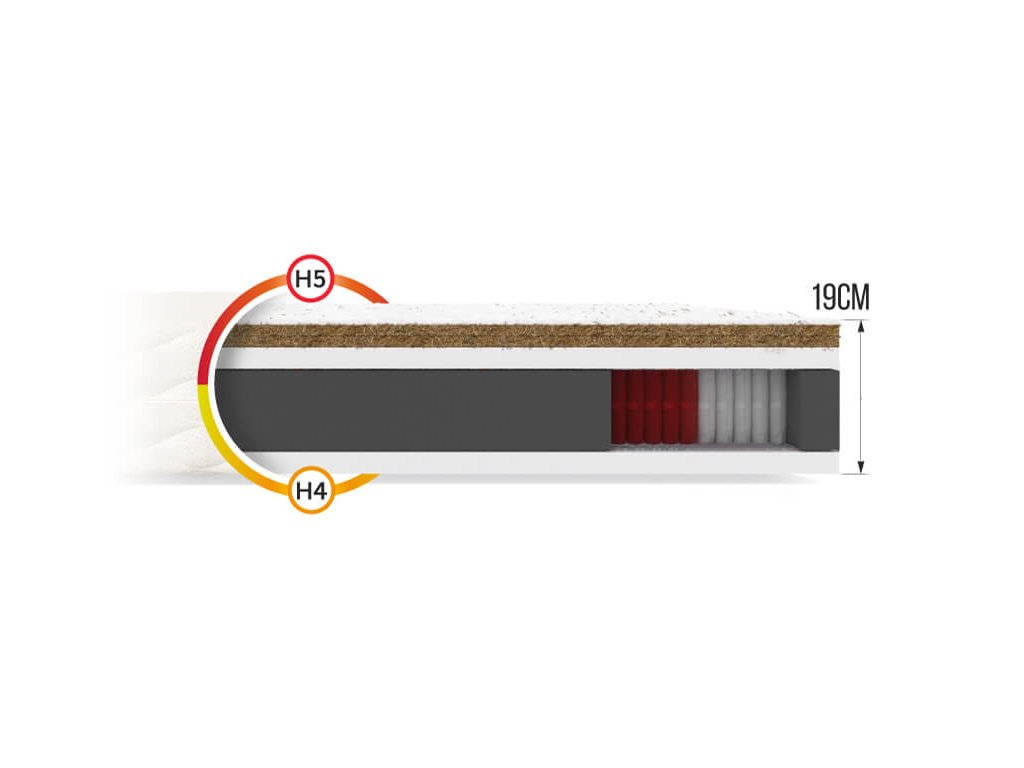 Összetétel: Filc, NanoHARD multi táskarugók, T25-ös poliuretán hab, kókusz réteg, huzat