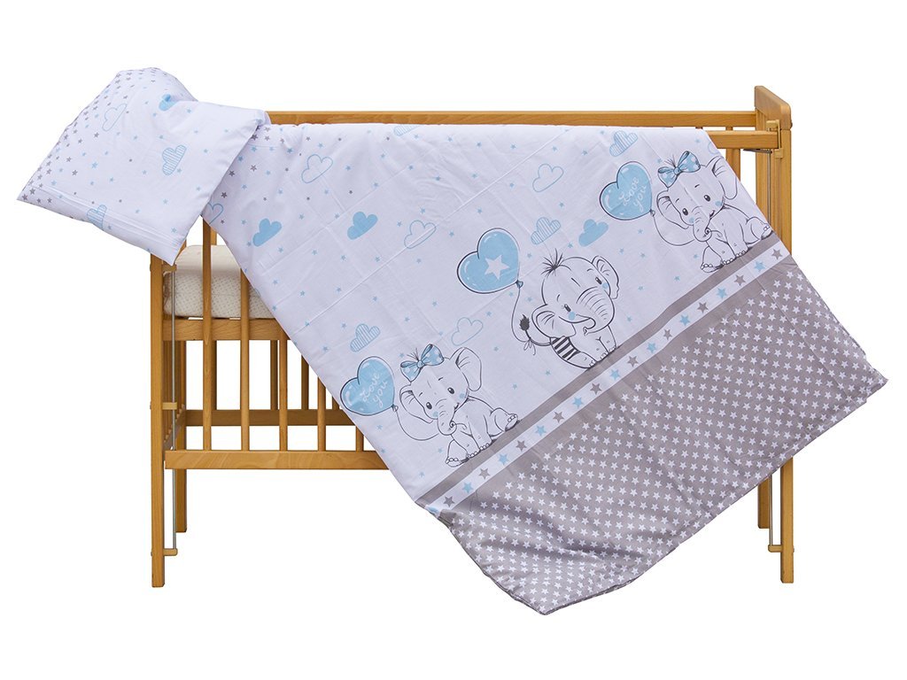 Aranyos elefánt mintás Scarlett GUSTO ágyneműhuzat gyerekeknek a kiságyba. A két részes szett tartalmaz egy párna és egy paplan huzatot. Az ágynemű pamutból készült és mosógépben mosható 30 °-on. Nem ajánljuk szárítógépben szárítani.