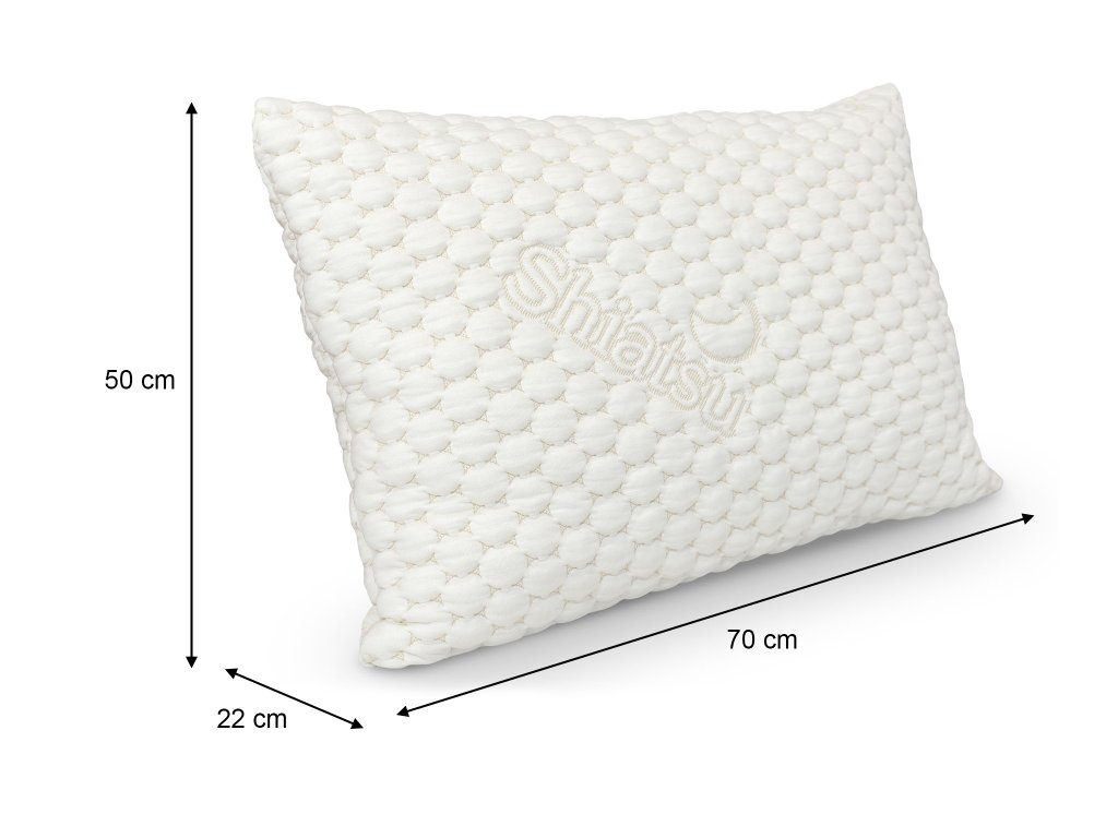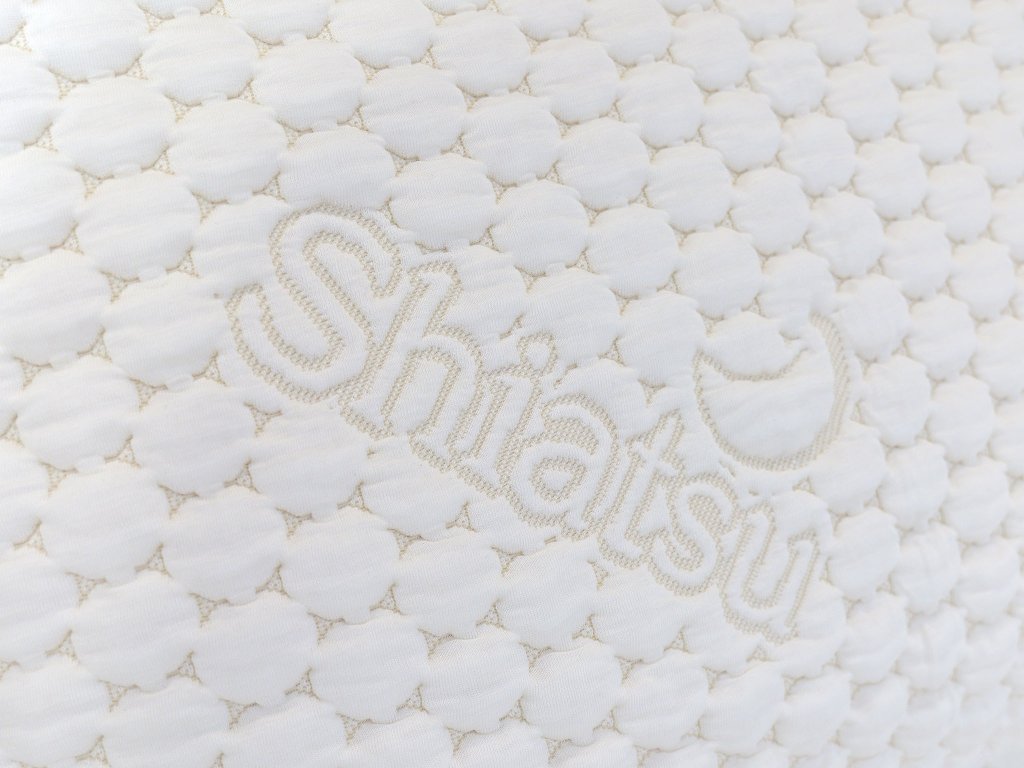 A párna kiváló minőségű és puha Shiatsu huzattal rendelkezik, melynek grammsúlya 500 g/m². Kiemelkedő légáteresztő képességével, antibakteriális tulajdonságaival tűnik ki, továbbá azzal a képességével, hogy egész évben ideális hőmérsékletet tart fenn a párnába belsejében. A cipzáras huzat levehető és mosógépben mosható max. 40 °C-on. Ráadásul OEKO-TEX® tanúsítvánnyal rendelkező anyagokból készült, ami garantálja azt, hogy egészségre is teljesen ártalmatlan. Ezt az anyagot használják a shiatsu terápiás masszázspárnáknál is.