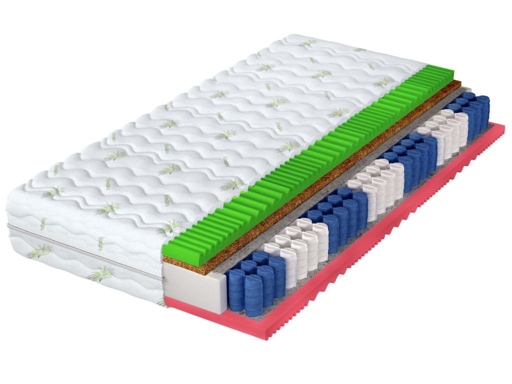 Élvezze ki a tökéletes pihenést a táskarugós HERA matrac 140x200 segítségével. A matrac optimális alátámasztást és egyedülálló kényelmet biztosít a 7 zónás táskarugóknak köszönhetően. Ezek a rugók precízen reagálnak a test minden mozzanatára, így biztosítva a testsúly tökéletes eloszlását és csökkentve a test nyomáspontjait. A Hera matraccal érvezheti a maximális pihenést és az egészséges alvást. A matrac egyik oldalán antiallergén kókuszdeszka található, amely nem csak tökéletes hőszabályzó tulajdonságokkal rendelkezik, de biztosítja a kiváló légáramlást is a matracban. Ez a kókusz réteg elnyeli a nedvességet, az izzadságot és ellenállóvá teszi a matracot a deformációkkal szemben, így is növelve a matrac élettartamát. A matrac mindkét oldalán poliuretán PUR habot és filc (nemez) réteget helyeztek el. Ezek kombinációja a kényelem és a stabilitás érzetét biztosítja, ugyanis elosztják a testtömeget és hosszú élettartamot biztosítanak a matracnak.