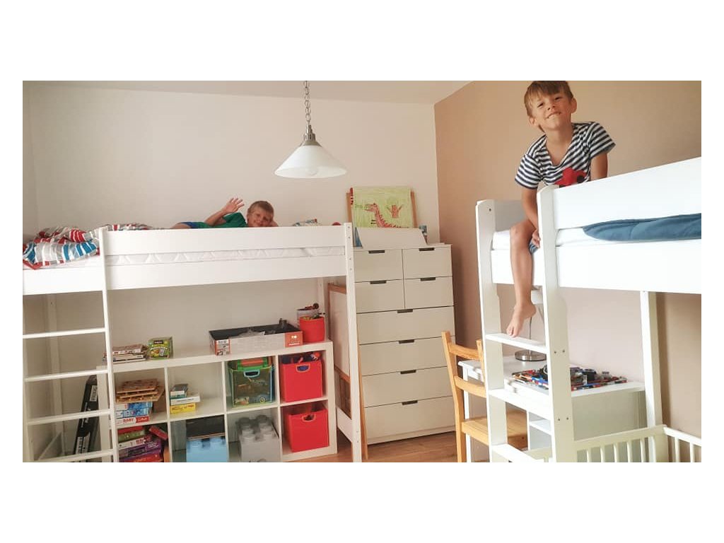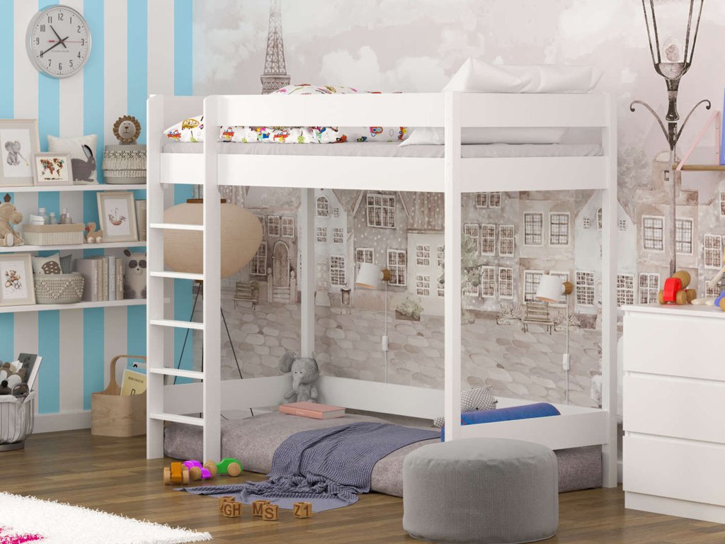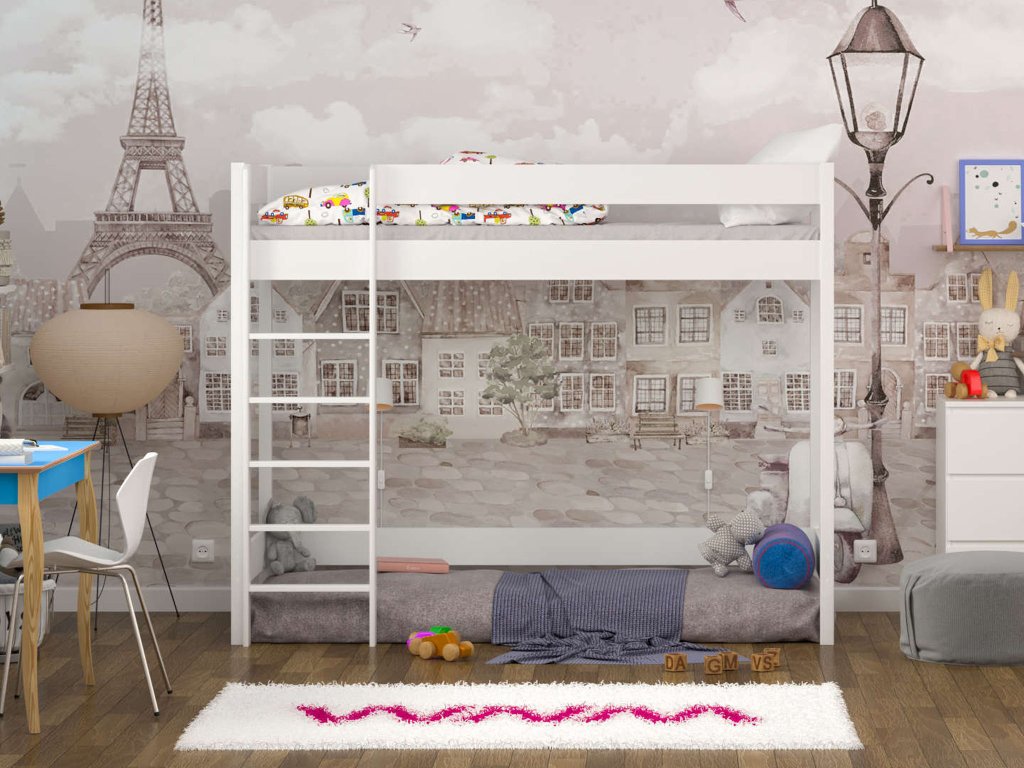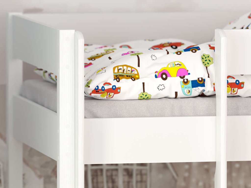 - Ágy anyaga: létra, lábak, lábak összekötése - tömör borovi; oldalak, keret - DTD