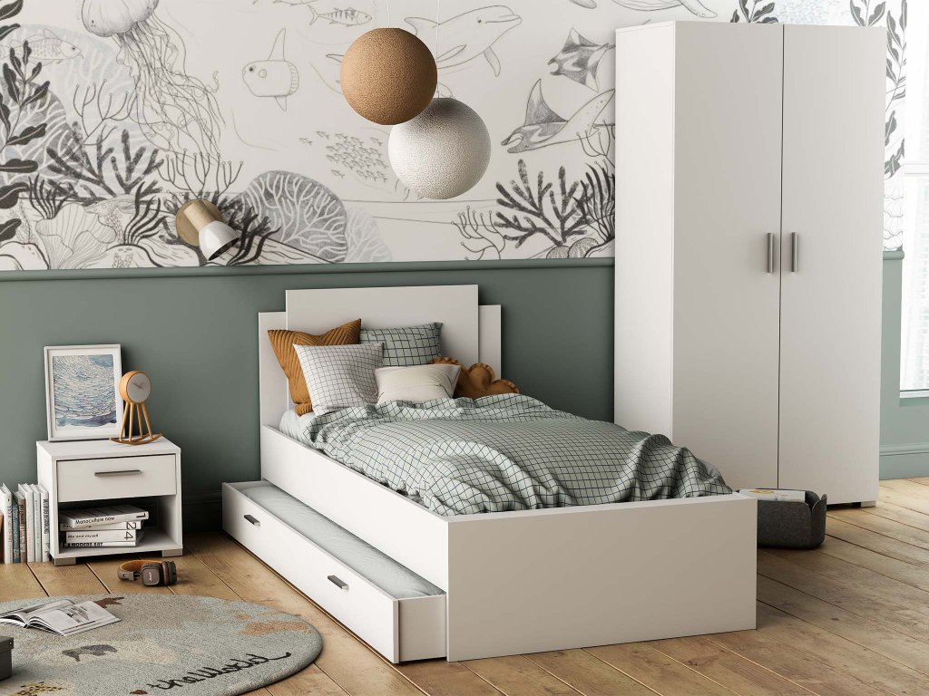 A stílusos Life egyszemélyes ágy népszerű, matt fehér kivitelben ideális választás gyerekszobába vagy diákok számára is. Egyszerű, minimalista formájának köszönhetően tökéletesen illik kisebb helyiségekbe is – ráadásul a fehér szín optikailag tágítja a teret, tiszta és légies összhatást teremt. Az ágyat elegáns fejtámla és minőségi kivitelezés jellemzi, amely tartós, 18 mm vastag laminált lemezből készül. A fekvőhely teherbírása akár 100 kg, ami kényelmet és biztonságot nyújt gyerekeknek és tinédzsereknek egyaránt. A belső betét szükség esetén eltávolítható, így az ágy rövidíthető 190 cm-re, vagy használható 90 × 200 cm-es matraccal is.