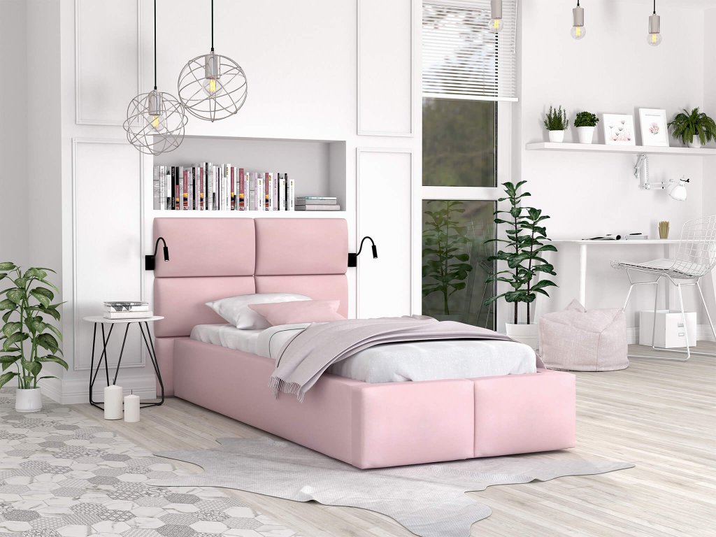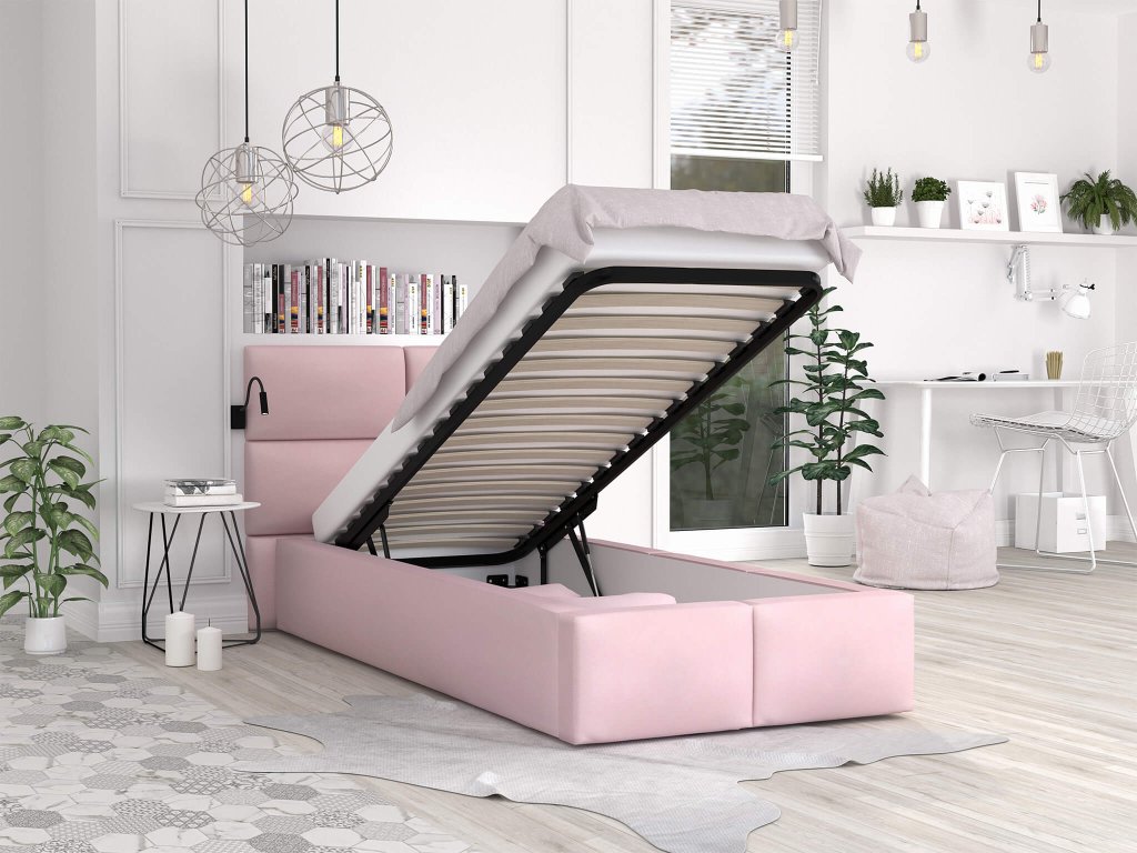 Kamasz lányának keres egy gyönyörű és lányos ágyat? A rózsaszín egyszemélyes DONY ágy 200x90 cm tökéletes választás a magas háttámlával, felnyitható ágyráccsal és ágyneműtartó tárolóval. Tökéletes választás azoknak, akik szeretnek az ágyban tévézni vagy könyvet olvasni. Az ágy minőségi anyagokból készült. Az ágy támlák Trinity szövettel vannak kárpitozva, amely igazán kellemes tapintású. Az ágyrácsot gázrugók segítségével lehet felnyitni, így fér hozzá az ágy alatt található tágas ágyneműtartó tárolóhoz. Az ágy igazán stabil és strapabíró a felhasznált anyagoknak és az erősített rögzítésnek köszönhetően.