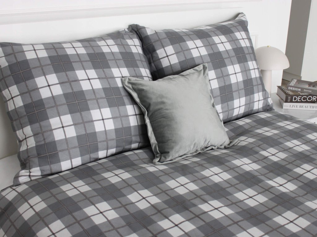 A szürke kockás Klarissa ágyneműhuzat 100 % pamutból készült 120 g/m2 grammsúllyal. Az ágynemű decens fehér cipzárral zárható. Mivel a cipzár műanyagból készült, ezért allergiások számára is megfelelő. Anyagát tekintve leginkább a lenre emlékeztet, felszíne matt, viszont mosás után kellemes és lágy tapintású lesz. A termék teljesen biztonságos, OEKO-Tex Standard 100 tanúsítvánnyal rendelkezik. Azért, hogy az ágyneműhuzat még hosszú évekig megőrizze a kinézetét, kérjük kifordítva mossa, behúzott cipzárral maximum 40°C-on. Szárítógépben szárítható és vasalni is lehet maximum 150°C-on.