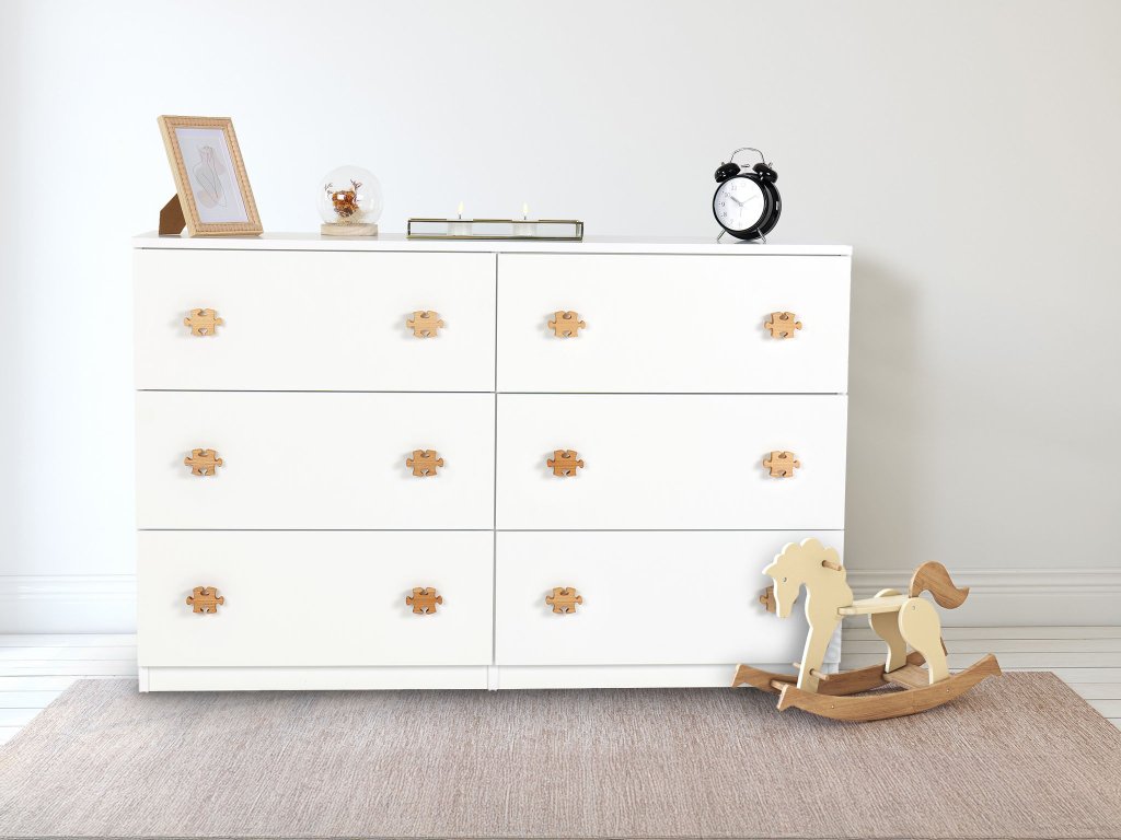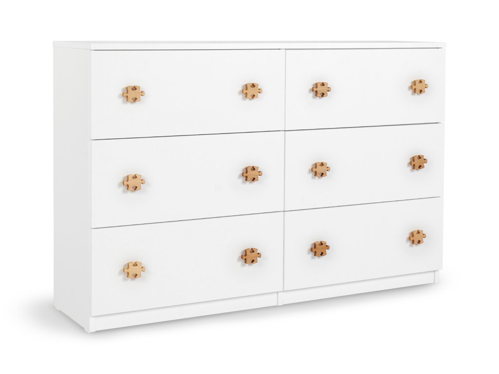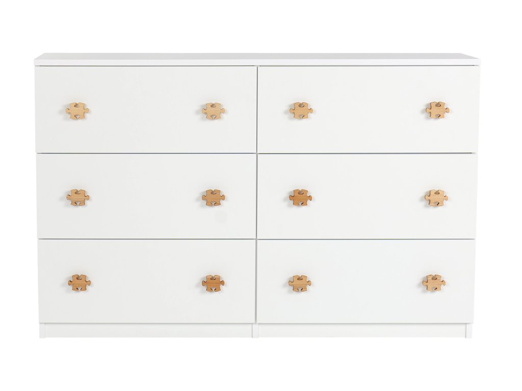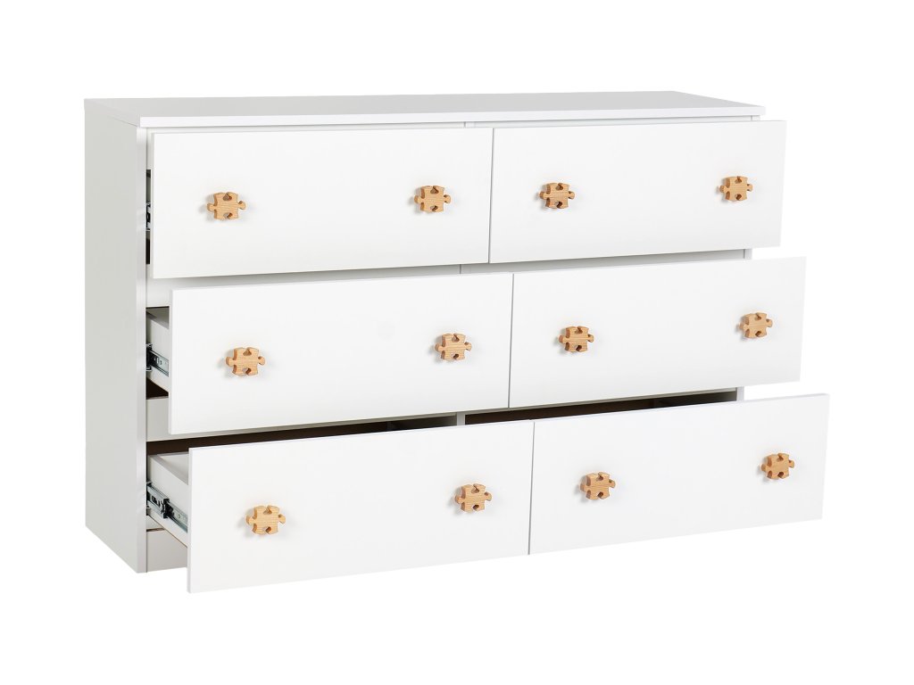 LEO 120 fehér komód puzzle alakú fa fogantyúkkal