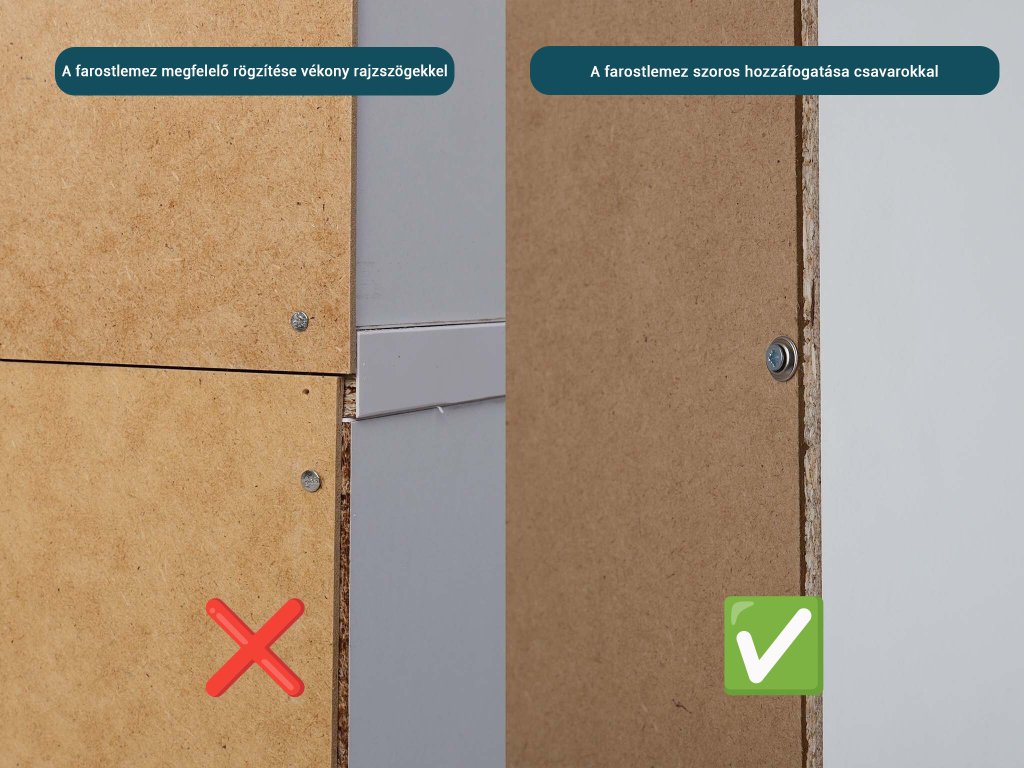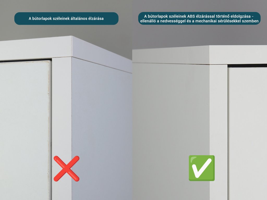 - Anyaga: Krono forgácslap, ABS élzárás, fém vezetősínek