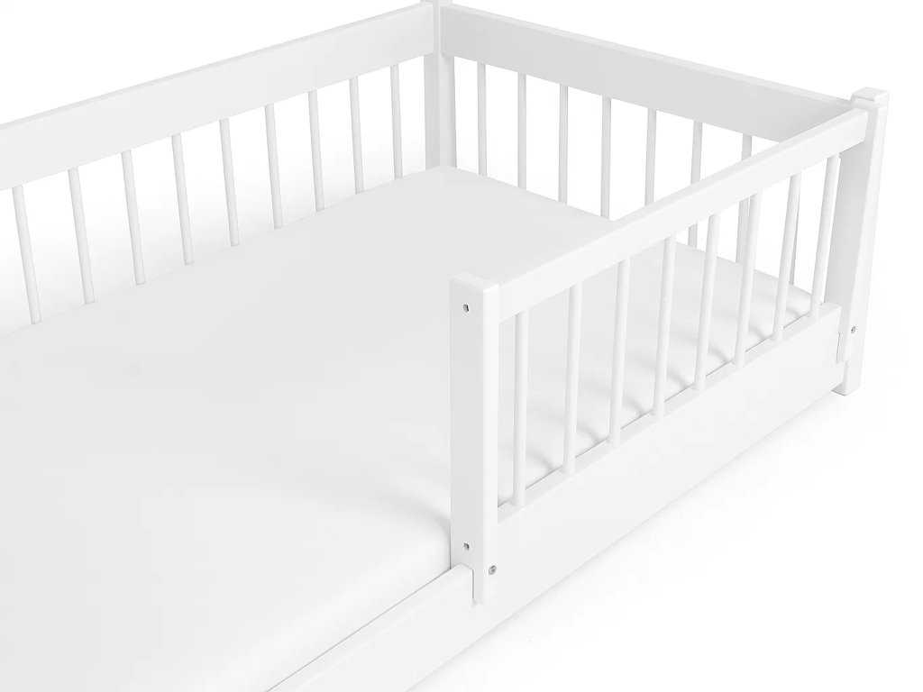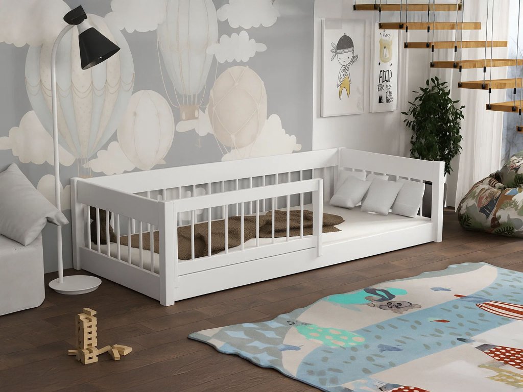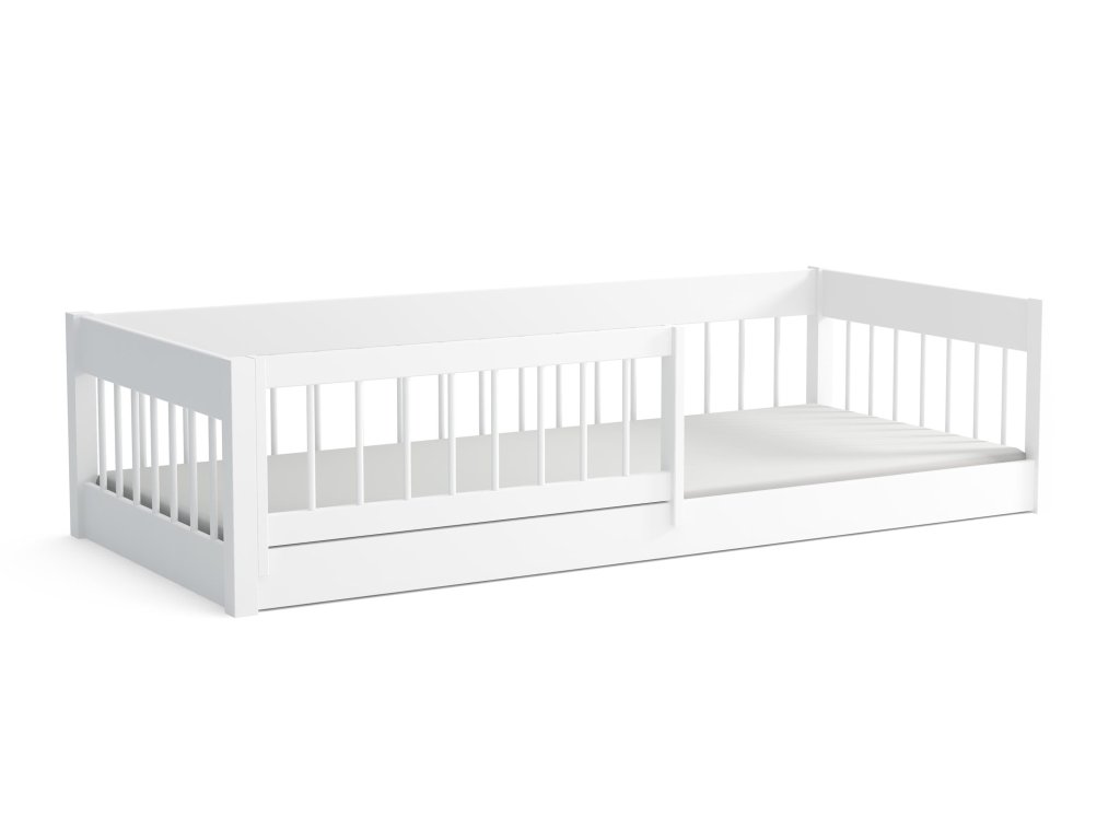 Lesanka 90x200-as fehér gyerekágy harmóniát, tisztaságot és nyugalmat hoz a gyerekszobába. Az alacsony, közvetlenül a padlóra helyezett szerkezetnek köszönhetően ideális azoknak a gyerekeknek, akik tanulják az önállóságot, és szeretnék teljesen irányításuk alatt tartani a terüket. Ez a típusú ágy a Montessori elveiből indul ki, amelyek támogatják a gyermek természetes fejlődését, kíváncsiságát és függetlenségét.