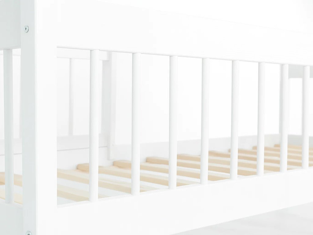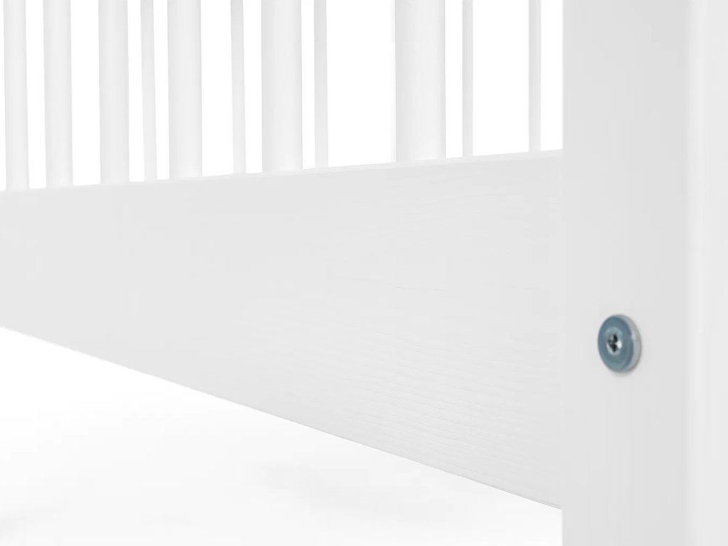 A fehér Lesanka ágy 200x90 méretben fix ágyráccsal van felszerelve, amely egyenletesen támasztja alá a matracot és támogatja az egészséges alvást. A maximális terhelhetőség 120 kg garantálja, hogy az ágy nemcsak a mindennapi használatot bírja, hanem a közös esti olvasást vagy játékot is a szülőkkel. Tartozéka egy levehető biztonsági korlát is, amely megvédi a kisebb gyerekeket az alvás közbeni leeséstől. A felületkezeléshez használt vízbázisú ökológiai lakkok hipoallergének és teljesen biztonságosak a gyerekek számára. A finom fehér kivitel tökéletesen illeszkedik a lányok és fiúk szobájába is, és könnyen kombinálható színes kiegészítőkkel vagy minimalista berendezéssel.