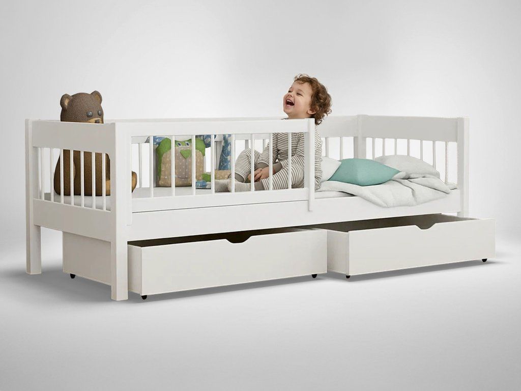 Azoknak, akik a stílus, a funkcionalitás és a biztonság tökéletes harmóniáját keresik, a Leszanka fehér gyerekágy ideális választás. Univerzális fehér színe tiszta, légies hatást kelt, és optikailag tágítja a teret, így kisebb szobákban is remekül mutat. A tömör fenyőből készült masszív szerkezet stabilitást és hosszú élettartamot biztosít, így az ágy sok éven át megbízható társa lesz gyermekének. Az ágy alatt két tágas fiókos ágyneműtartó található, amelyekben könnyedén elférnek a játékok, ágyneműk vagy ruhák – praktikus megoldás, amely segít rendet tartani és helyet spórolni a szobában.