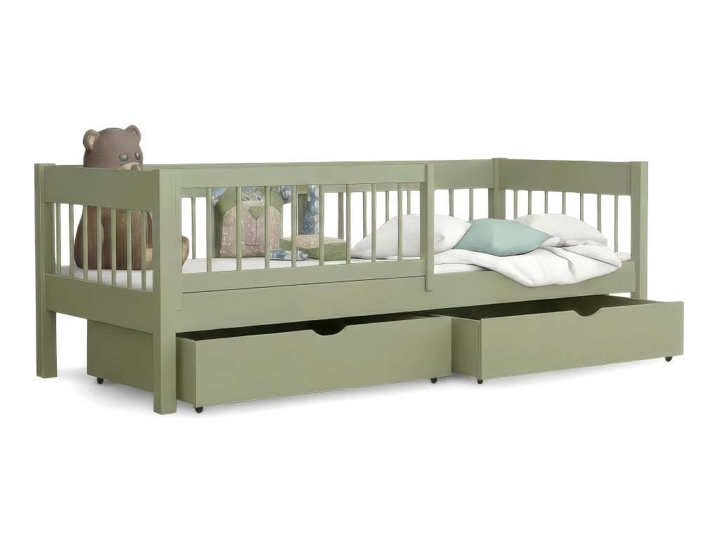 LESZANKA tömörfa gyerekágy ágyneműtartóval 80x180 - olivazöld
