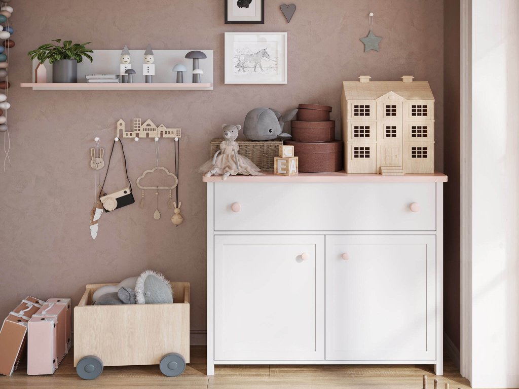 A LUNA bútor kollekció darabjaival egy gyönyörű lányos gyerekszobát rendezhet be kis hercegnőjének. Az egyes bútor darabok púderrózsaszín és fehér szín kombinációjában készülnek. A LUNA bútor családba tartozó bútorok laminált DTD bútorlapból készülnek. ABS élzárással rendelkeznek, melynek köszönhetően nagyon ellenállóak a sérülésekkel szemben. A bútorokon található bájos rózsaszín fogantyúk műanyagból készülnek. Provanszi stílusú romantikus gyerekszoba összeállítás, amely minden kislány álma.