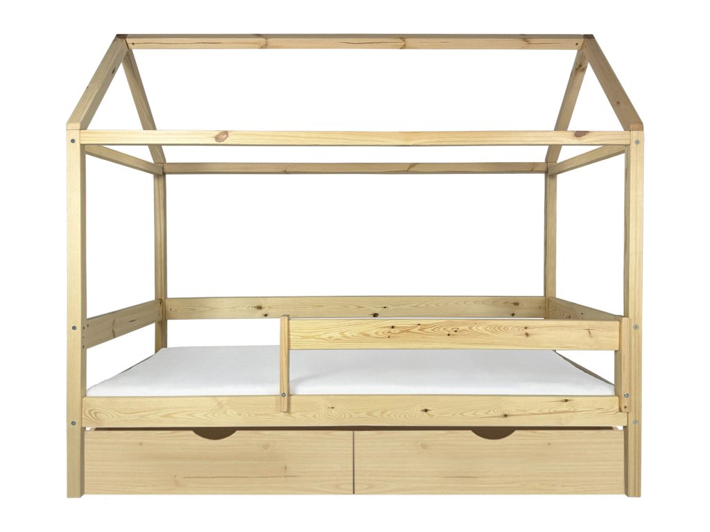 Natúr borovi PERY tömör fa házikó ágy 90x200 ágyneműtartóval