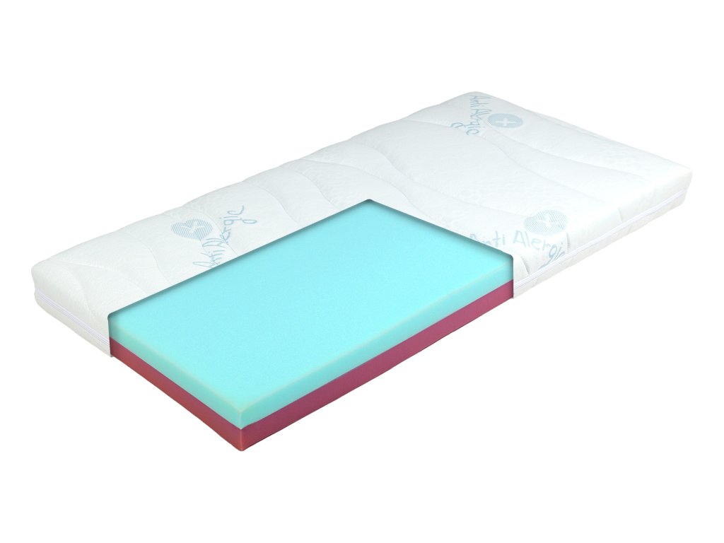 A két különböző keménységű és nagysűrűségű pur habok szendvics összetétele biztosítja az ágybetét számára a szükséges szilárdságot és tartósságot. Antiallergén cipzáras huzattal rendelkezik, amely könnyű karbantartást és higiéniát tesz lehetővé. A matrachuzat levehető és 60 °C-on mosógépben mosható.