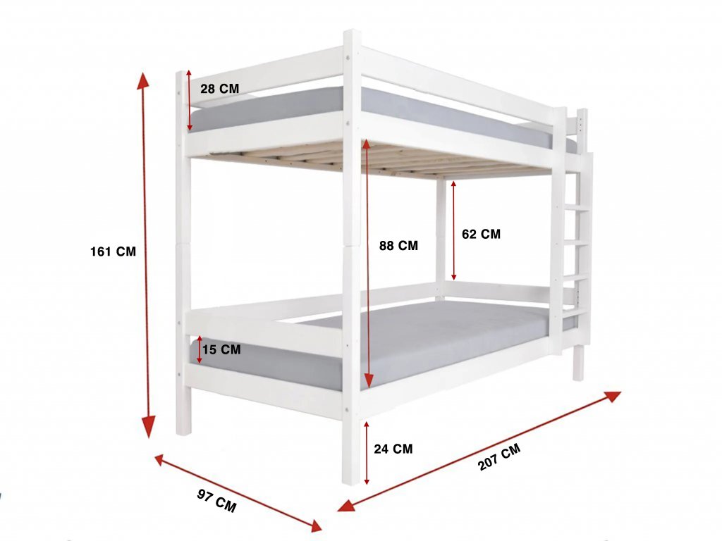 - A padló és az alsó fekhely ágyrácsa közötti távolság: 25 cm