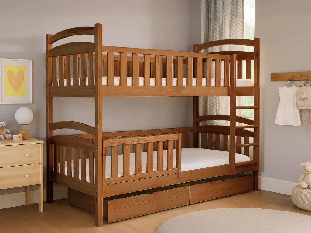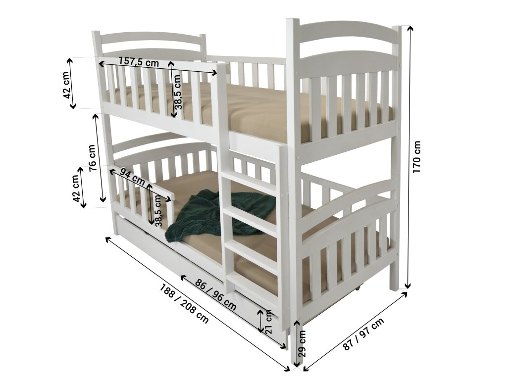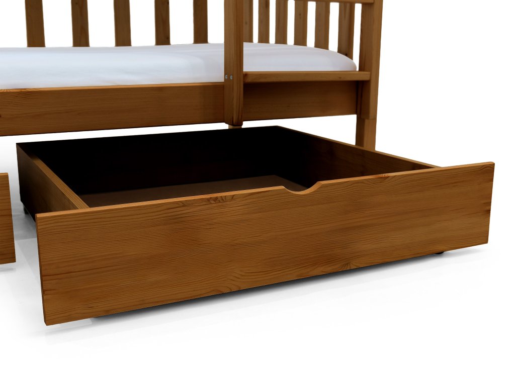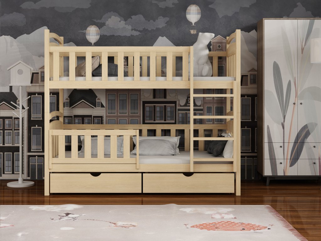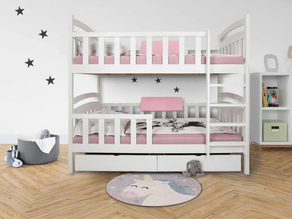 Masszív és strapabíró Paula 7 emeletes ágy, amely igazán helytakarékos megoldás. Ráadásul felnőttek és gyerekek számára is megfelelő. Imádni fogja a gyönyörű tömör borovi fenyőből készült emeletes ágyakat tároló fiókokkal, szilárd szerkezettel. Az emeletes gyerekágyak 3x vannak lakkozva egészségre nem ártalmas ökológiai lakkal. Különböző színekben elérhető! Az ágy szélei le vannak kerekítve, hogy ne okozzanak sérülést. Az emeletes ágy könnyen szétszedhető 2 önálló fekhelyre. Az ágyrácsok szintén erős tömör fából készültek. Az ágy univerzális, tehát kétoldalas. Szerelés előtt döntheti el, hogy jobb vagy bal oldalra szeretné szerelni a létrát. Az emeletes ágy 2 tároló fiókot tartalmaz, amelyek kerekeken mozognak, hogy ne okozzanak sérülést a padlón. Nincsenek rögzítve, tehát nagyon könnyű a mozgatásuk.