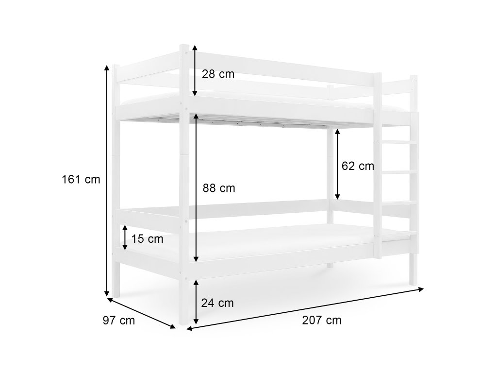 - A padló és az alsó fekhely ágyrácsa közötti távolság: 24 cm