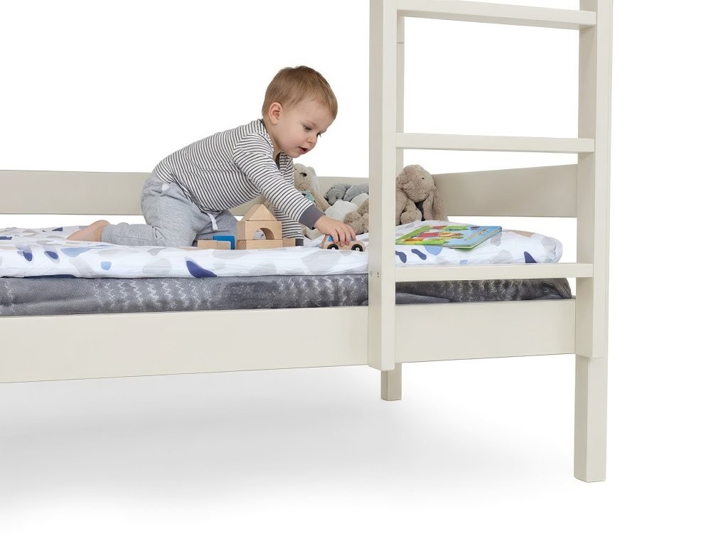 Az ágy univerzális, a létra jobb és bal oldalra is felszerelhető. A felső leesésgátló az ágy része, az alsó igény esetén hozzávásárolható