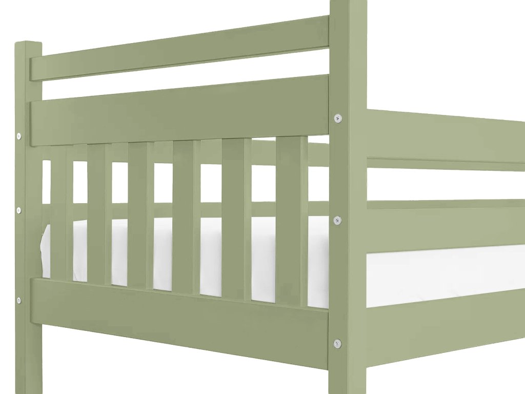 Különleges olivazöld színben készült PETRA 5 emeletes ágy, amely ágyráccsal, ágyneműtartókkal és pótággyal is rendelkezik. Gyönyörű színben készül és akár három felnőtt embernek is megfelelő lehet. A tömör borovi fenyőből készült emeletes ágy 90x200 stabil szerkezettel rendelkezik, így nagyon strapabíró. Az ágy a pótágyon kívül két ágyneműtartó tároló fiókkal is rendelkezik, amelyek műanyag kerekeken mozognak, hogy ne sértsék meg a padlót. Nincsenek az ágyhoz rögzítve, így könnyen mozgathatók. A vendégágy kihúzható és így egy harmadik, teljes értékű fekhely alakítható ki. A biztonsági leesésgátlók pedig biztosítják majd gyermeke biztonságát. Az alsó fekhelyen található leesésgátló szükség szerint le- és felszerelhető. Háromrétegű, környezetbarát lakkozással rendelkezik, és egy univerzális kétoldalasan felszerelhető létrával van ellátva. Mindhárom szinten masszív léces ágyrács található, az ágy pedig igény szerint két különálló fekvőhellyé is szétszedhető.