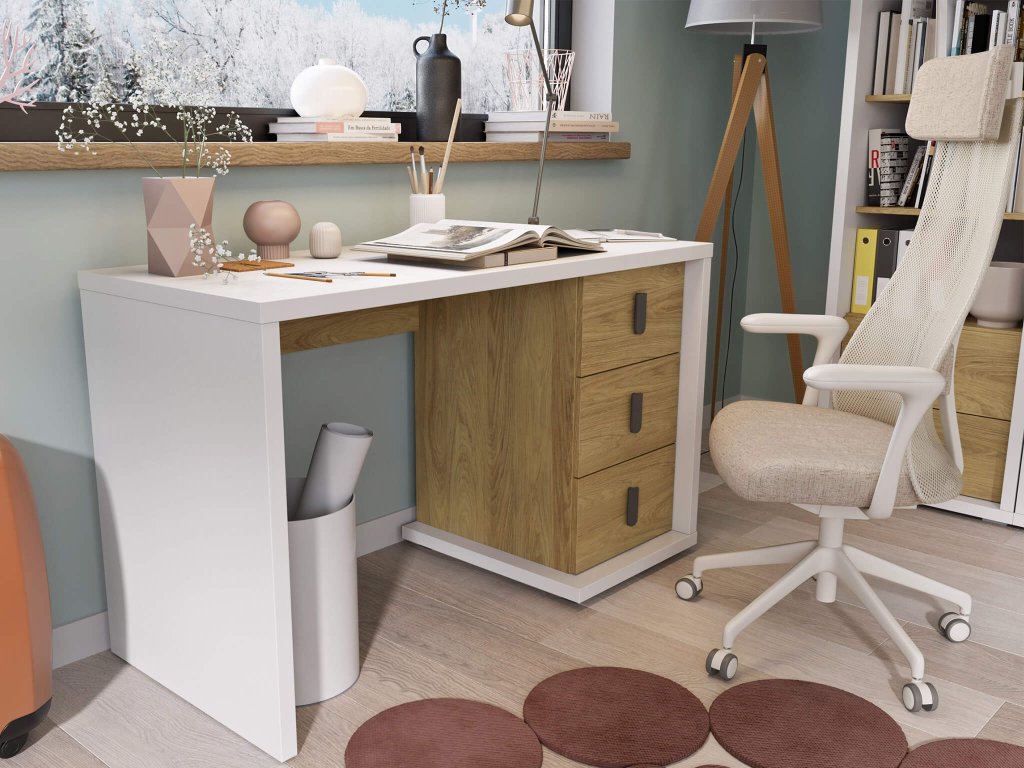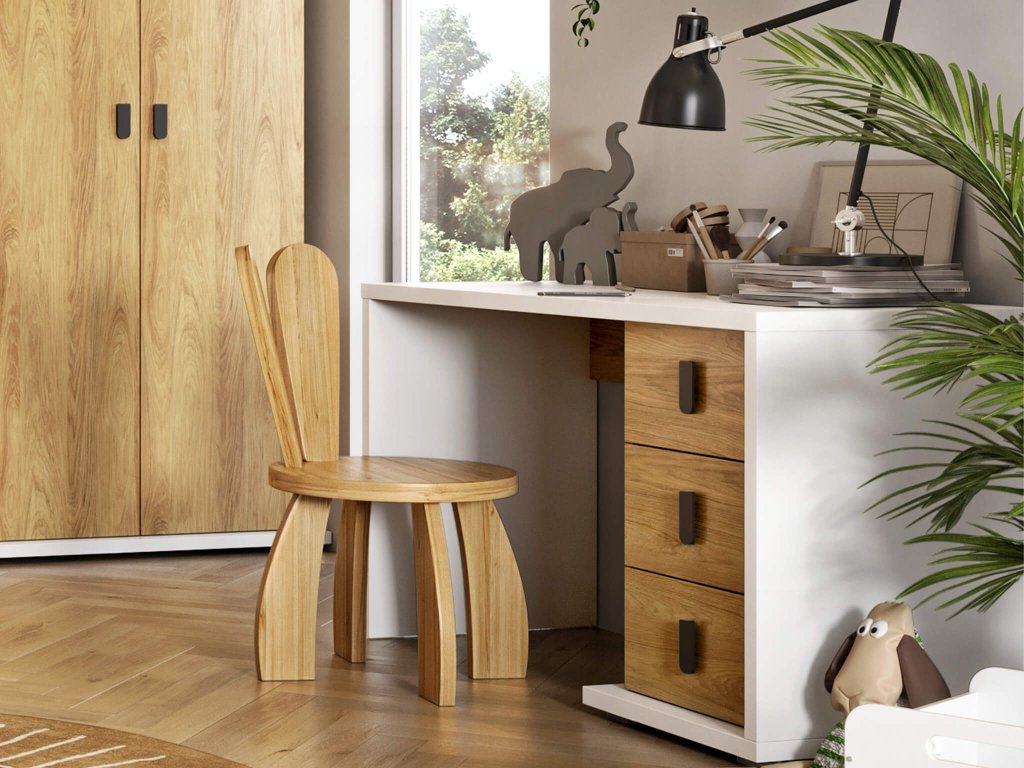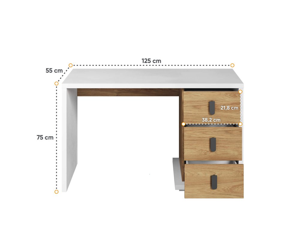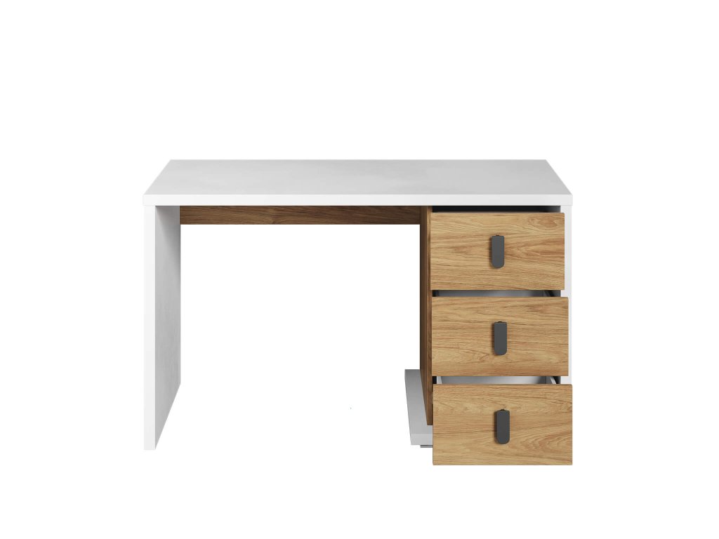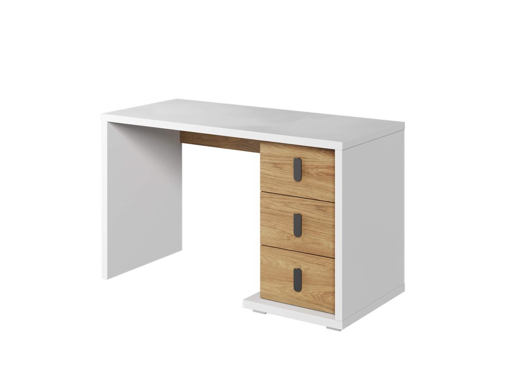 Modern SIMI íróasztal, amely tökéletes választás lányos és fiús gyerekszobába egyaránt. Stabil szerkezettel és három fiókkal rendelkezik, amelyek hikora tölgy előlapokkal rendelkeznek. A fiókokba kényelmesen elférnek a gyerekek iskolai eszközei, könyvei, füzetei. A 125 cm szélességének köszönhetően számítógépes asztalként is megállja a helyét.