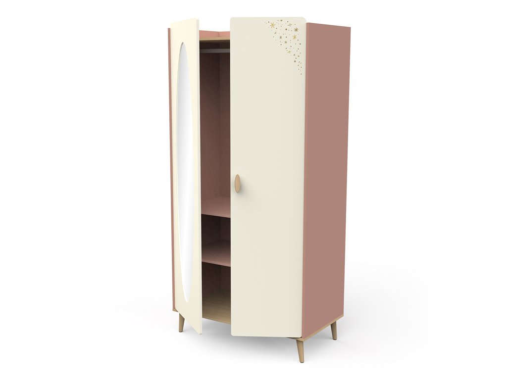 A Suzie gyerekruhaszekrény nemcsak stílusos, hanem praktikus bútordarab is, amely bármelyik gyerekszobát feldobja. Finom, rózsaszín és krémszínű dizájnját tündéri csillagok díszítik, amelyek gyengédséget visznek a térbe. A masszív tölgyből készült stabil lábaknak köszönhetően a szekrény tartós és strapabíró. Belső elrendezése – akasztórúd ruhákhoz és két polc – bőséges tárolóhelyet biztosít. Nem hiányzik a praktikus tükör sem. A szekrény minőségi MDF-ből és faforgácslapból készül, kialakítása tágas, mégis kompakt, így tökéletes választás a baba kortól egészen tinédzserévekig.