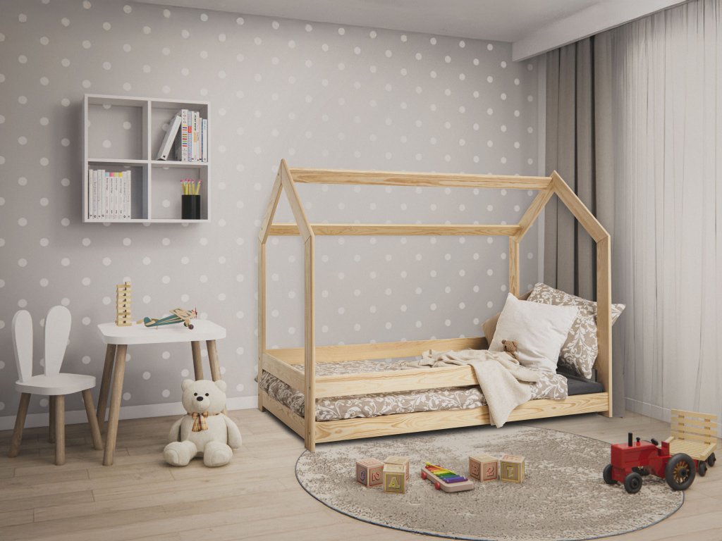 Hozza létre gyermeke álomszobáját a Valena ágy segítségével! Kiváló minőségű anyagokból készült – 20 mm vastag fenyőfából, amely tartósságáról és szilárdságáról ismert. Az ágy oldalán védőkorlát található, amely megóvja gyermekét az alvás közbeni leeséstől. Ennek a megoldásnak köszönhetően nyugodtan alhat, biztos lehet benne, hogy gyermeke biztonságban és kényelemben van. A házikó formájú kialakítás könnyedén illeszkedik a szoba többi bútorához.