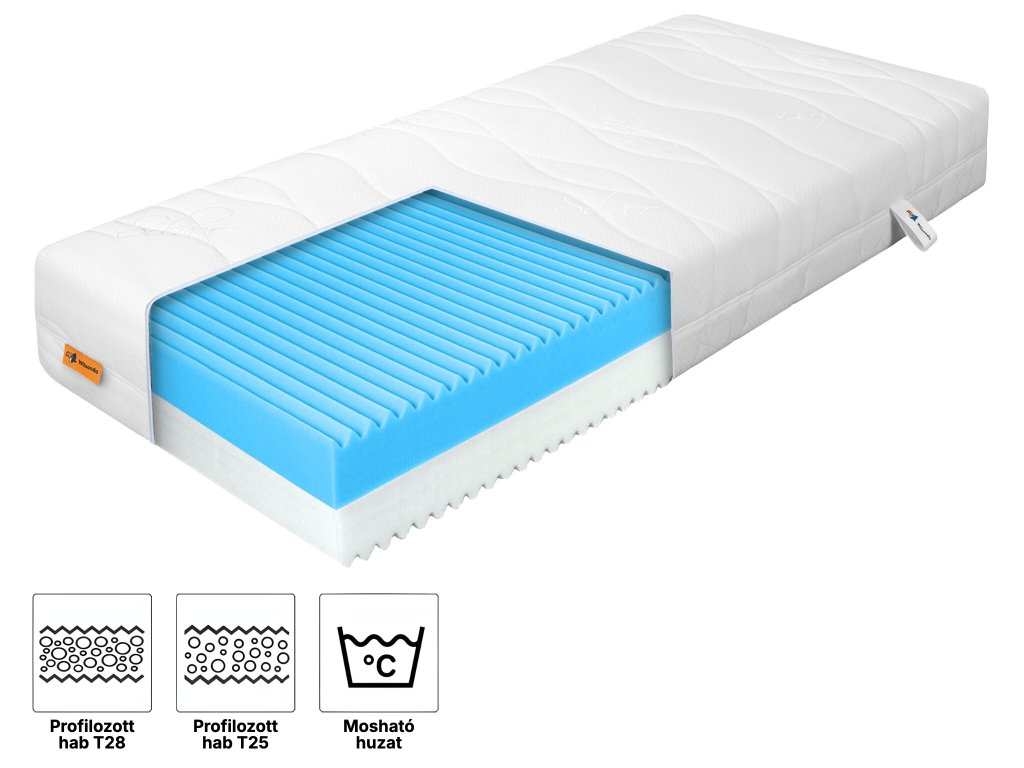 Kiváló minőségű, 7 zónás hab profilozott szerkezettel, amelyet úgy terveztek, hogy támogassa a megfelelő vérkeringést és az izmok ellazulását alvás közben. Reagál a testhőmérsékletre, ami lehetővé teszi, hogy alkalmazkodjon a test kontúrjaihoz, ezáltal javítva az alvás kényelmét. A különböző zónák eltérő keménységi rendszere optimális támaszt nyújt a gerincnek, és biztosítja a test természetes pozícióját. Ez az anyag allergiában szenvedők számára is ideális választás.